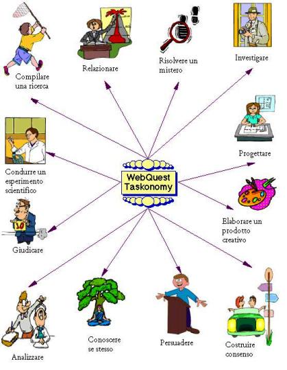 La definizione dei compiti e dei ruoli è uno degli aspetti fondamentali nella creazione di questi ambienti; Dodge propone diversi tipi di webquest, classificati secondo lo scenario, i compiti e i ruoli e raggruppate nei dodici modelli della sua tassonomia (taskonomy):